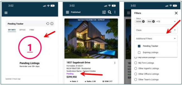 1) A Pending Tracker widget can now be added to your Paragon Connect Dashboard. This can help you keep better track of your long-term pending listings and remind you when they need to be closed when they are no longer pending.