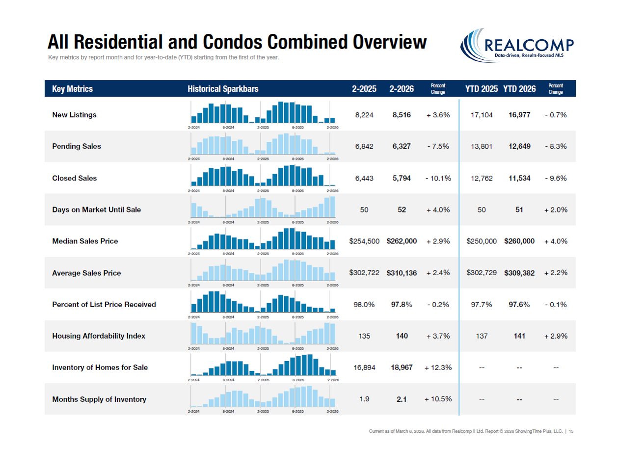 “It was heartening to see more homes entering the marketplace in February,” said Karen Kage, CEO, Realcomp II Ltd. “With Spring fast approaching we are hopeful it is a positive sign for good things to come.”