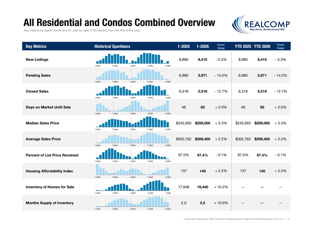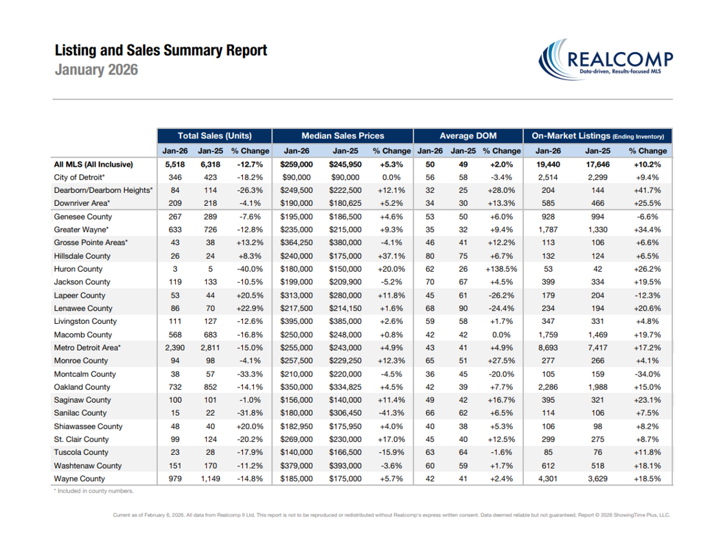Note: These numbers represent real estate market activity in the lower part of Michigan. Be sure to contact a REALTOR® for their expertise about local markets. Find a REALTOR® in your market at www.MoveInMichigan.com.